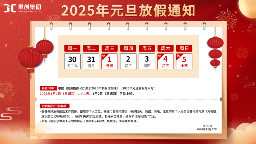 聚创集团全体员工祝您2025元旦快乐(放假通知)