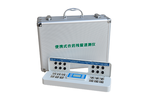便携式农药残留检测箱仪器的检测原理是利用速测卡中的胆碱酯酶(白色药片)可催化靛酚乙酸酯(红色药片)水解为乙酸与靛酚,由于有机磷和氨基甲酸酯类农药对胆碱酯酶的活性有强烈的抑制作用,使催化水解后的显色发生改变。因此,根据显色的不同,即可判断样品中含有机磷或氨基甲酸酯类农药的残留情况。