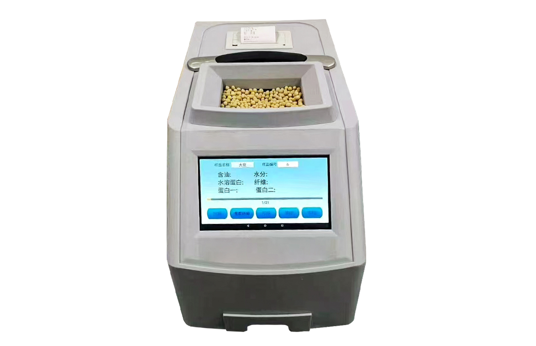 大豆蛋白速测仪(大豆近红外分析仪)是集光、机、电、算法学等多学科技术于一体的高技术集成检验仪器。操作简单,2分钟出结果,测量范围:水分、水溶蛋白、粗蛋白(折算系数6.25)、粗蛋白(折算系数5.71)脂肪、粗纤维
