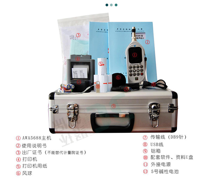 AWA5688型多功能声级计是采用数字信号处理技术的新一代噪声测量仪器,是AWA5680系列的升级产品,功耗更低,功能更强,彩屏液晶,界面友好,显示内容丰富。A、C、Z三种并行(同时)的频率计权及F、S、I三种并行(同时)的时间计权,可以同时测量多种评价指标,一档量程实现105dB级线性范围。分析功能多,统计、积分、1/1OCT、1/3OCT、FFT和数字记录可以同步或异步启动。独特的快速设置功能可帮用户“一键”设好相关标准要求的分析仪模式和参数,回到测量界面按下启动即可完成一次测量。低功耗、电池与外接电源自动切换功能的设计,可以实现超长时间的持续测量。32Mb的FLASH RAM可靠保存测量结果,也可选配大容量SD卡。