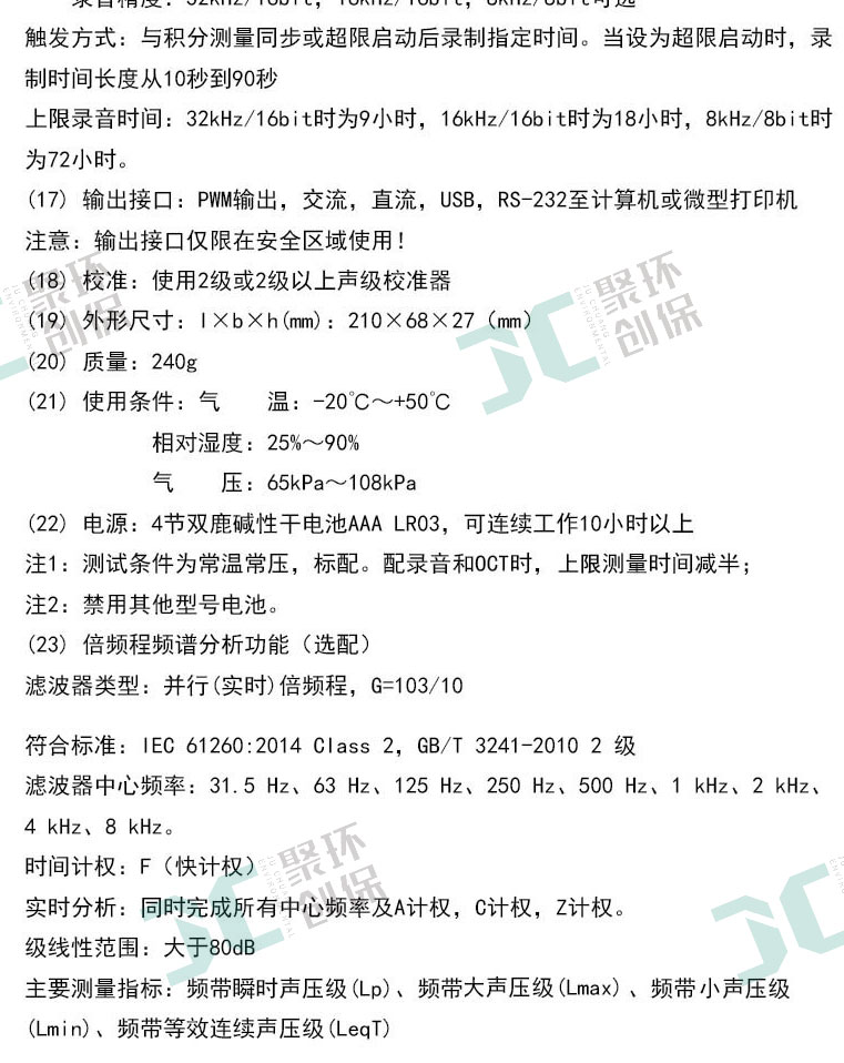 符合标准:IEC 61260:2014 Class 2,GB/T 3241-2010 2级