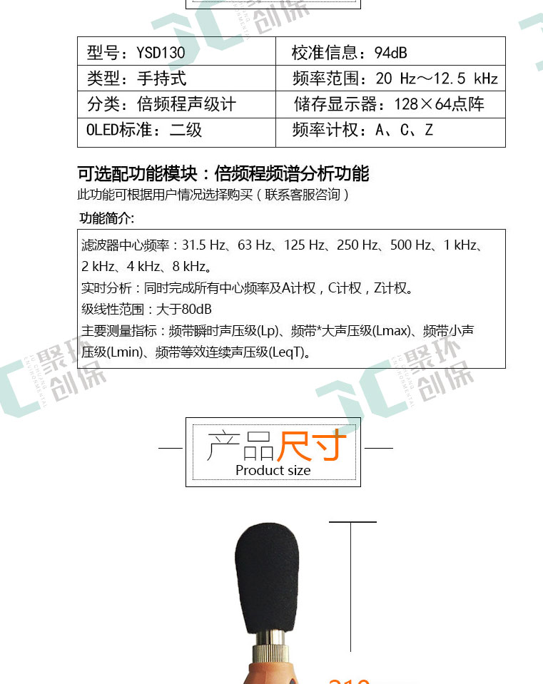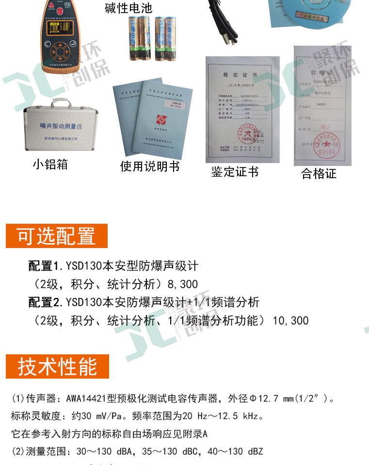 YSD130型噪声分析仪是一种数字化、模块化多功能声级计。其安全性能符合GB3836.1、3836.4的有关规定。执行GB/T 3785-2010和IEC 61672:2013标准对2级声级计的要求,滤波器执行GB/T 3241-2010 2级,个人声暴露计执行GB/T 15952-2010的要求,对射频场敏感度属X类。