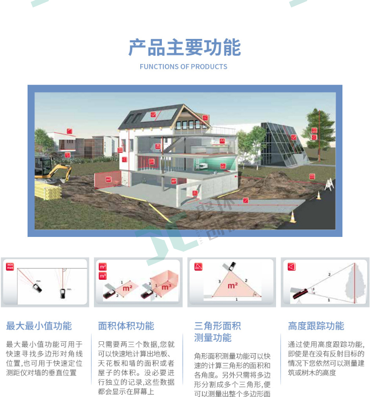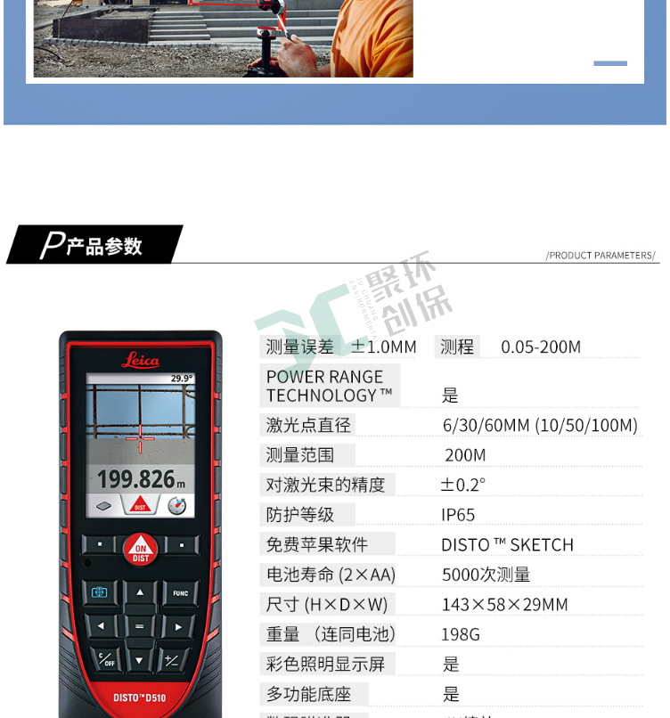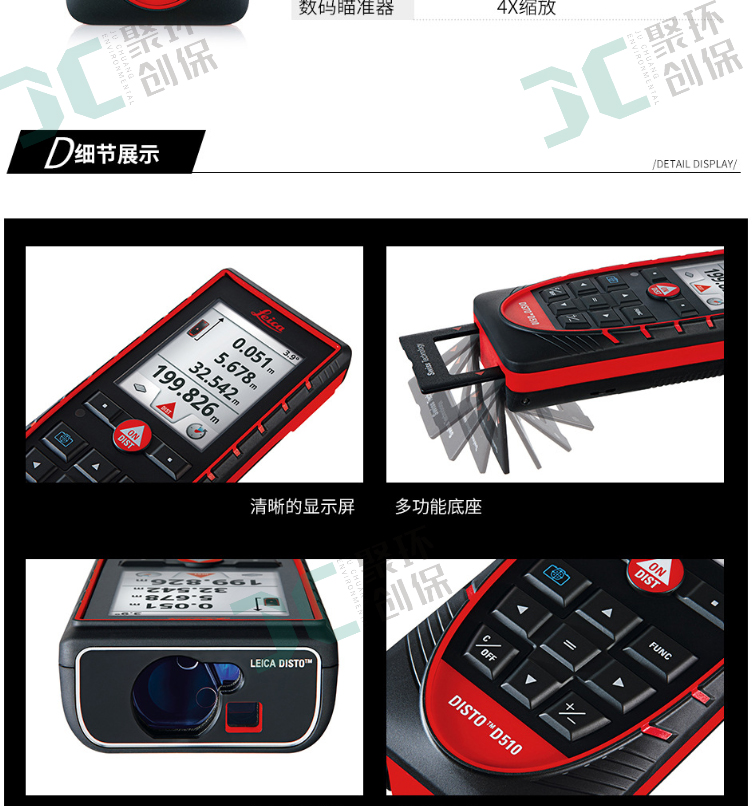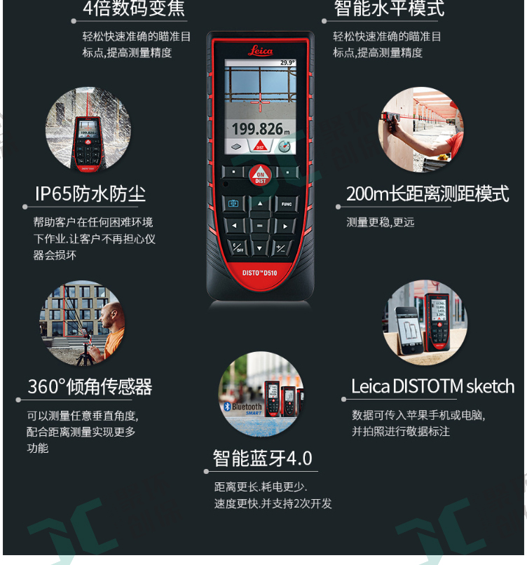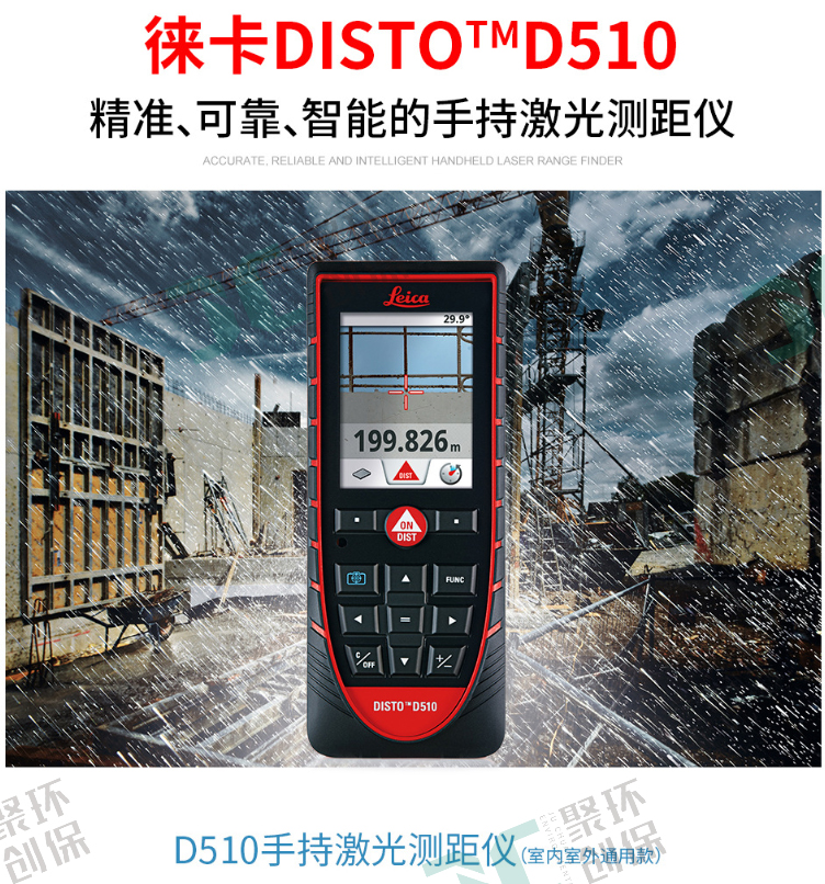 全新的徕卡LEICA DISTO D510代表容易和轻松的户外距离测量。独特的组合的数字Pointfinder的和360°倾角传感器传统的测距仪的测量是不可能达到的。