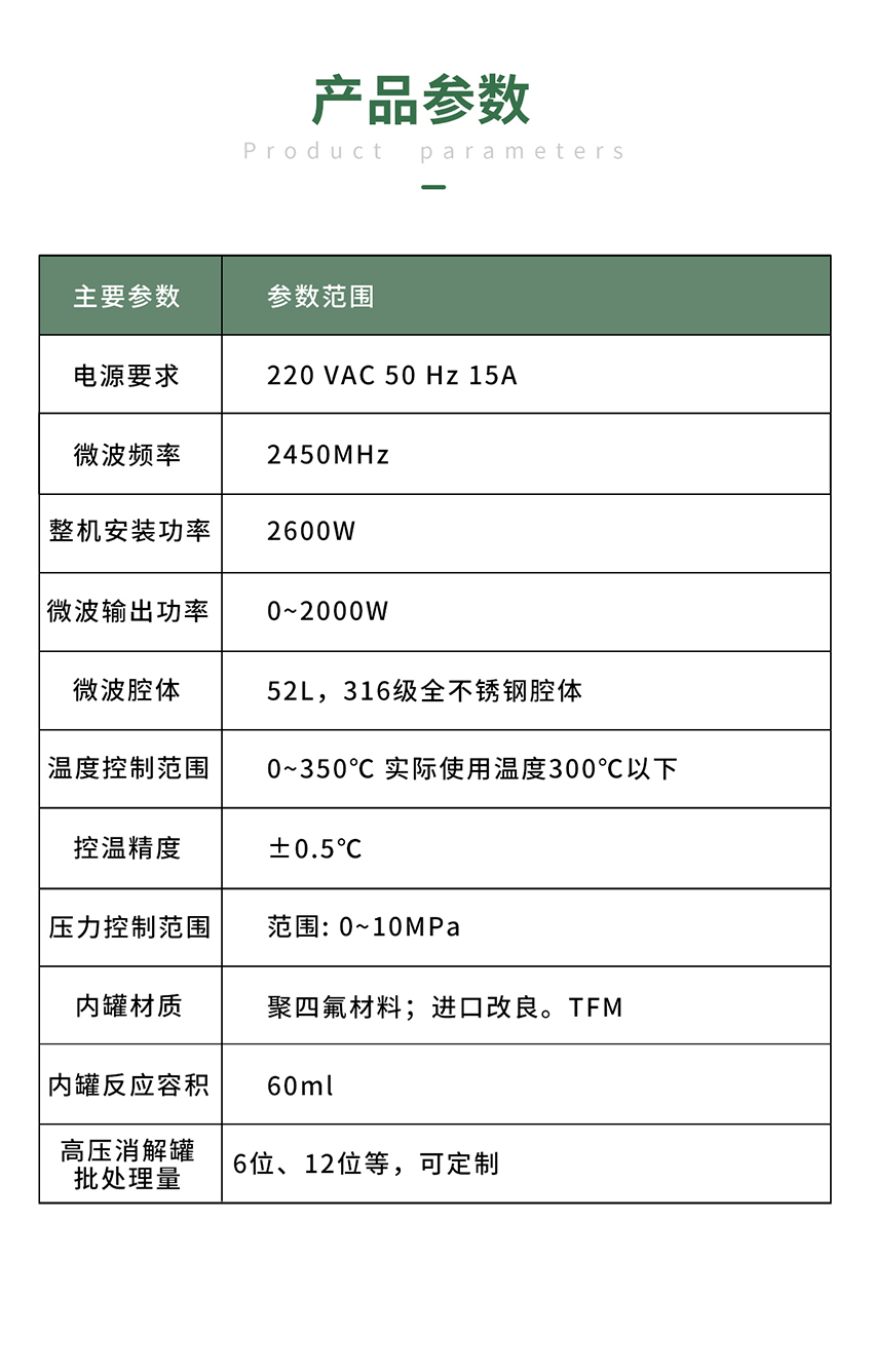 仪器采用微波非脉冲连续自动变频控制,延长了仪器的使用寿命和电磁波的均匀性,腔体采用58L大容积316L不锈钢腔体材料特制而成,自锁式缓冲防爆炉门,当反应异常时,缓冲结构确保操作人员人身安全和炉门结构完整无损,炉门和腔体结合紧密,微波泄漏符合国家标准。仪器采用温、压双控系统对消解实验的压力和温度进行控制,实时显示。360°同向连续旋转,微波均匀,保证各个样品微波环境相同,提高实验结果的一致性。当罐内的压力超过设定的保护值时,微波会自动停止加热。安全防爆膜具有双保险功能。