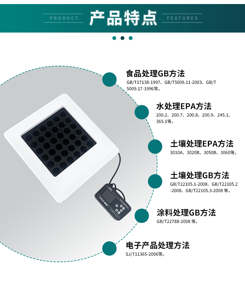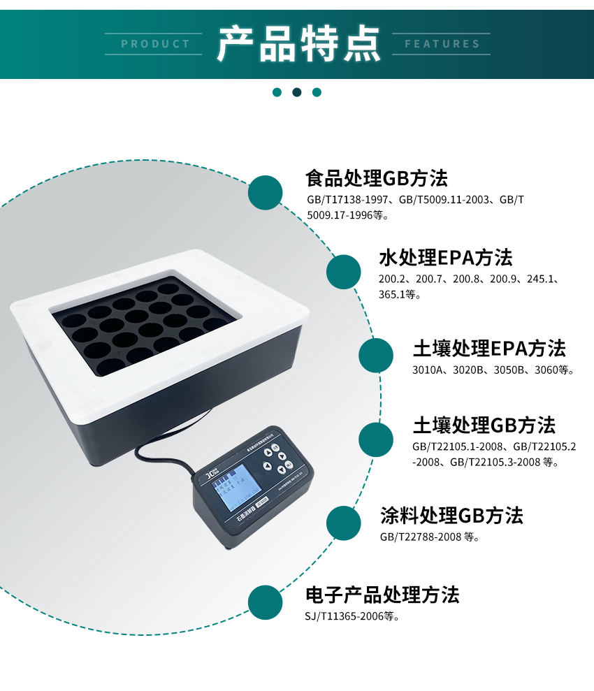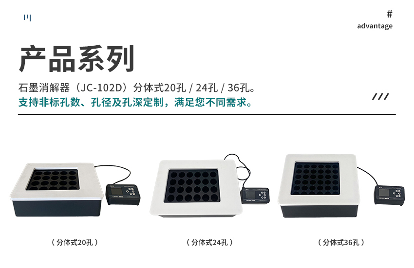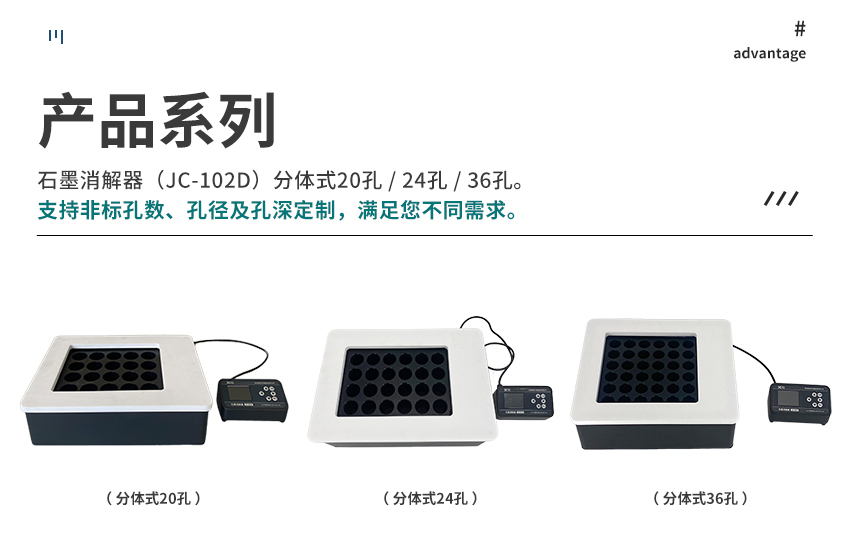 ④批量处理,整体时间大大缩短,孔径及孔深可根据消解罐大小定制。