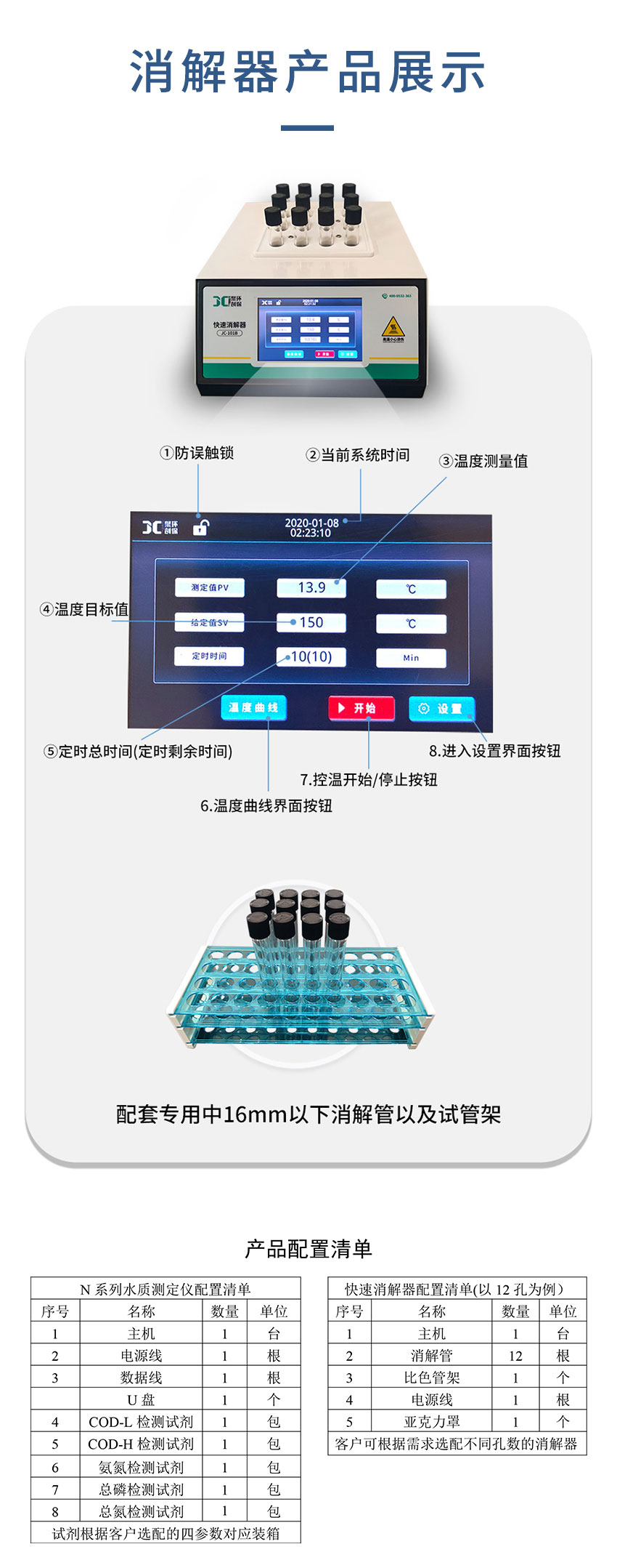 8. 比色池适用于Φ16mm圆形消解比色一体管,相比于方形比色皿操作更简便。