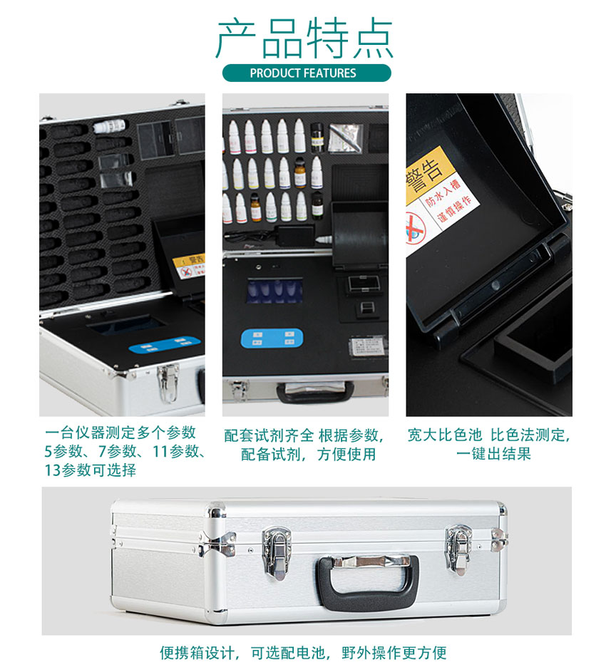 4. 本仪器具有选择水质参数测量功能,通过光源的自动切换,适用于水中各个指标的快速定量测定。
