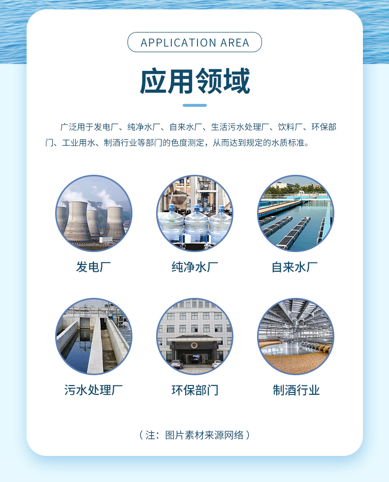 可广泛应用于环保监测站、污水处理厂、大专院校、科研院所、石化、造纸、印染、电子、电力、钢铁、农业、市政工程等行业。