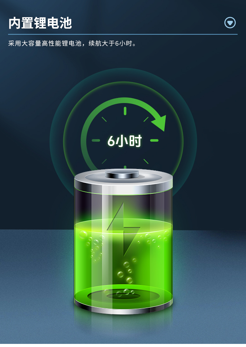 2.手持轻量化设计,充电时间小于续航时间6小时以上。