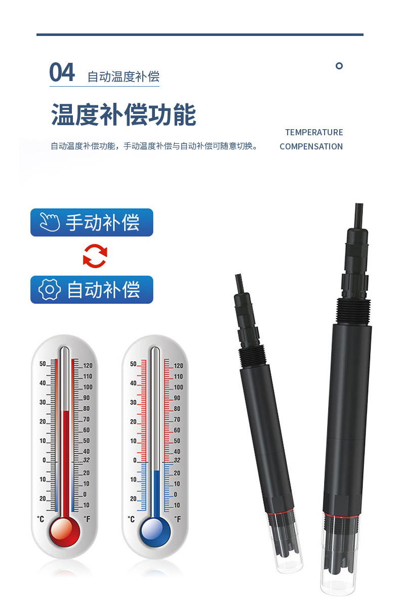 复合传感器带有温度传感器,程序中自带温度补偿功能,手动补偿与自动补偿可随意切换;