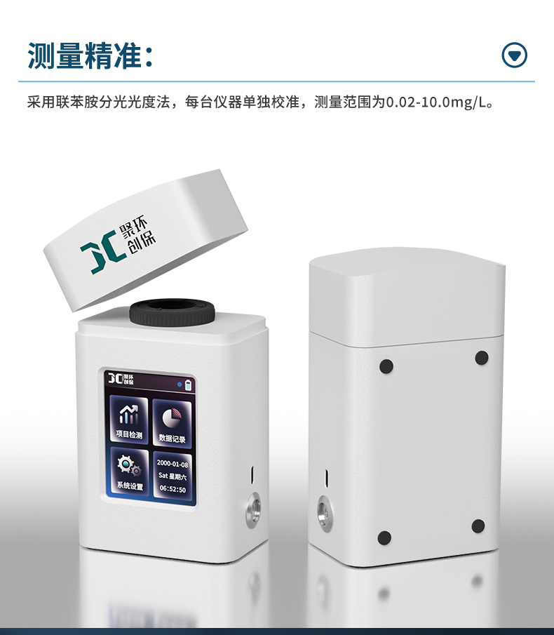 聚创JC-YL-01型手持式余氯总氯检测仪适用于大、中、小型水厂及工矿企业、生活或工业用水的游离余氯/总余氯浓度检测,以便控制水的游离余氯/总余氯达到规定的水质标准。