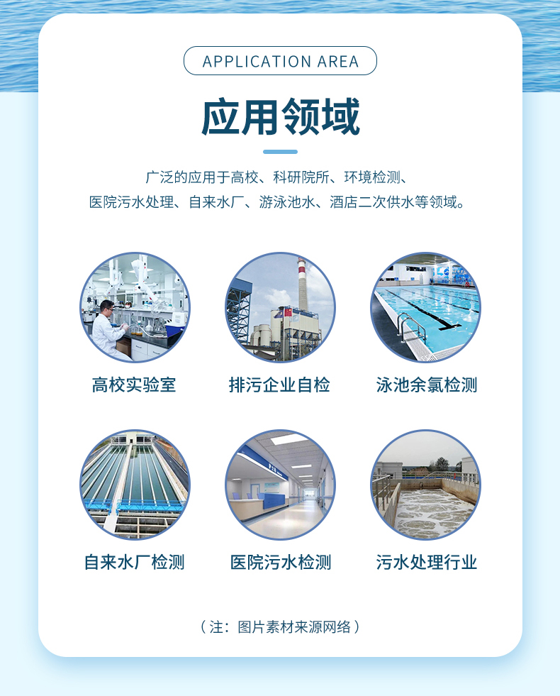 广泛的应用于高校、科研院所、环境检测、医院污水处理、自来水厂、游泳池水、酒店二次供水等领域