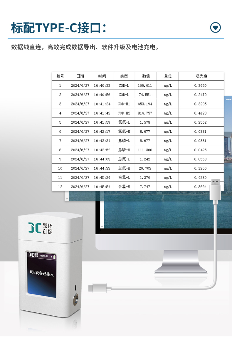 9.标配Type-C接口,具备数据导出以及软件升级功能。