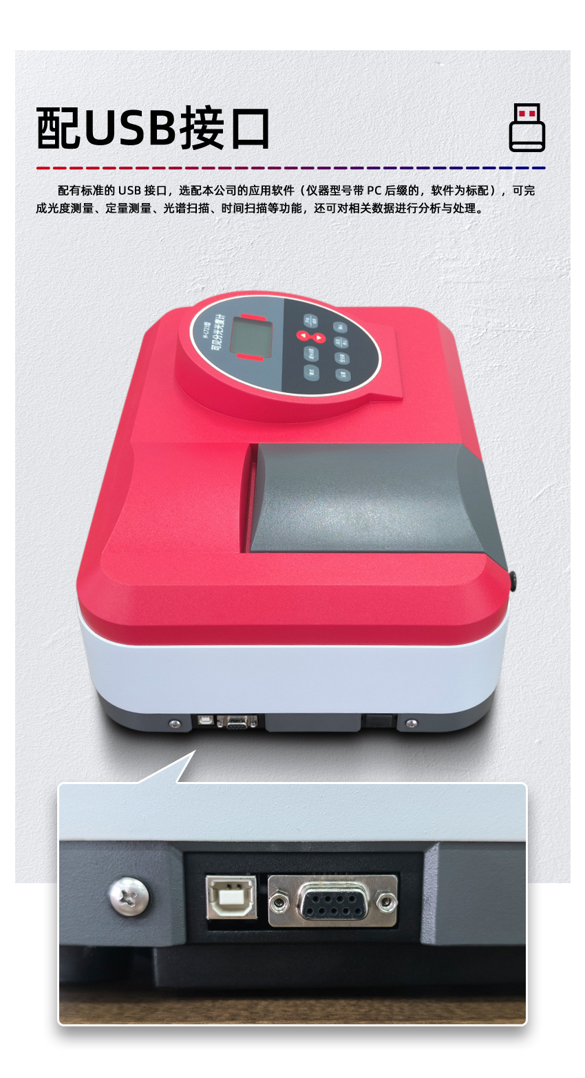 配备通用并行打印接口或微打接口,可打印标题栏、测量数据、曲线参数、曲线标准样品点和曲线