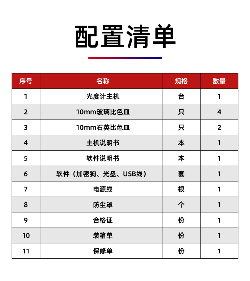 ◆基本功能:透过率、吸光度、浓度、能量等测量功能