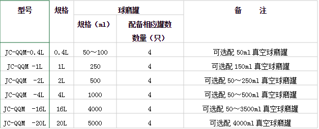 JC-QQM系列全方位行星式球磨机采用交流电机变频程序控制(无碳刷磨损、寿命长、低速启动功率大、节电、能设置程序运行),整机一体化,体积小、重量轻、噪音低,操作简单,不需严格平衡即可操作。控制系统采用目前国内先进的具有程序设置功能的变频调速控制,可实现连续单向、连续换向、定时单向、定时换向四种方式的程控运行。