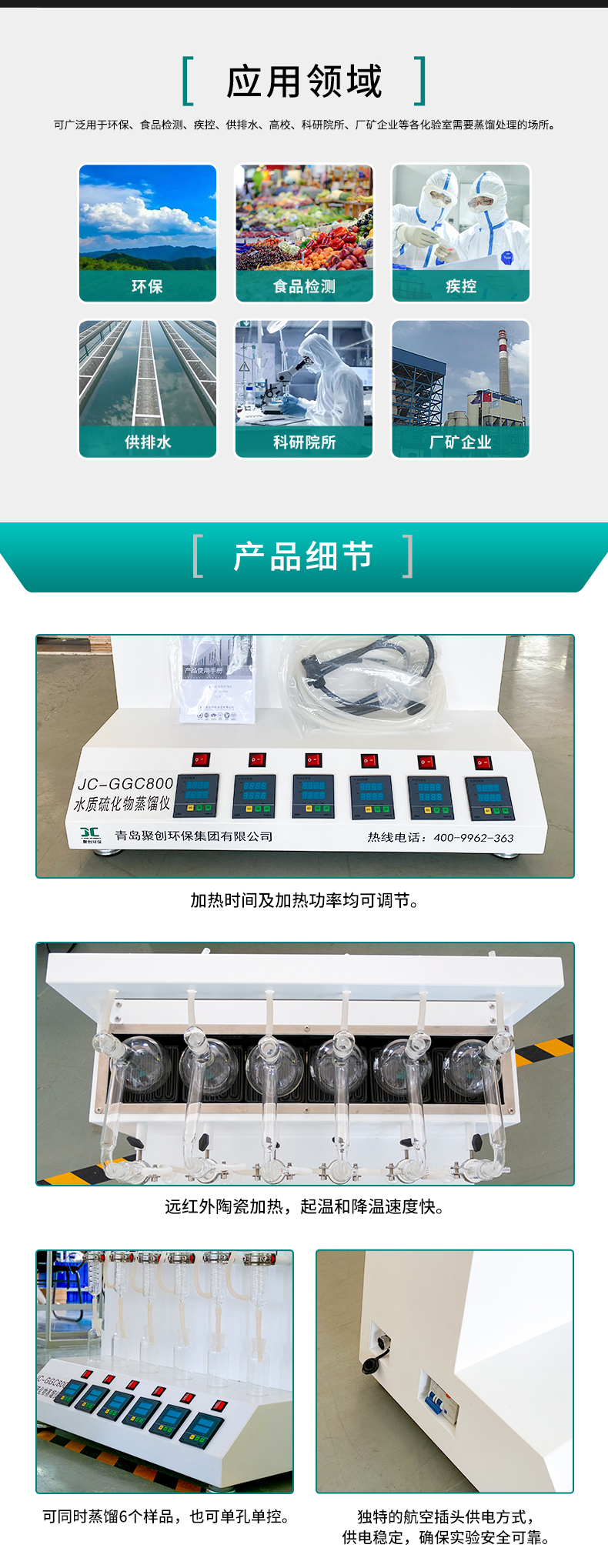 JC-GGC800型水质硫化物蒸馏仪是我单位根据中华人民共和国国家生态环境标准: HJ 1226—2021 水质硫化物的测定-亚甲基蓝分光光度法标准开发生产的。
