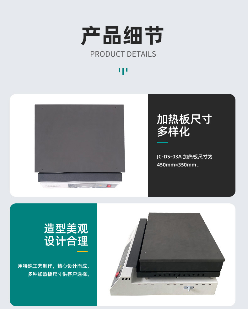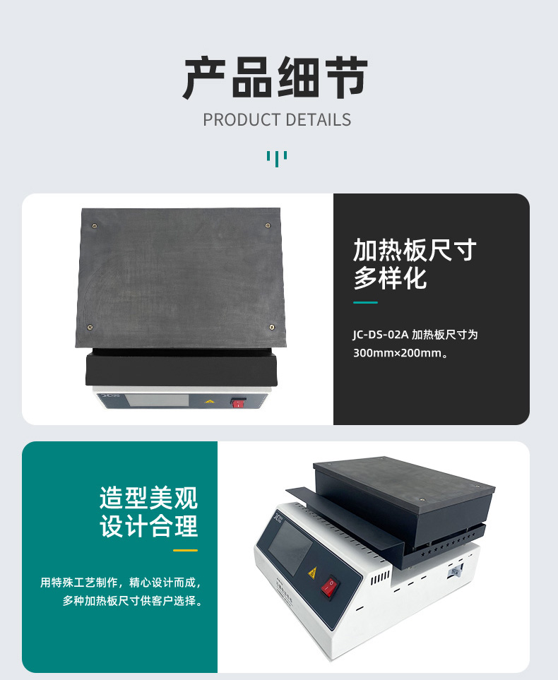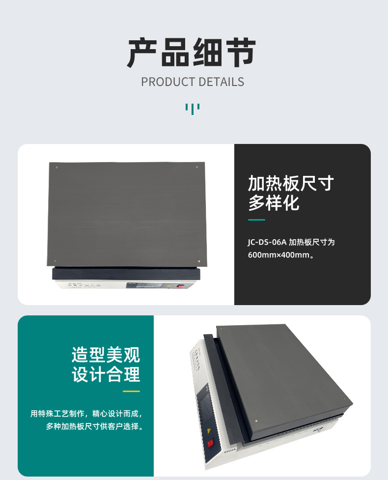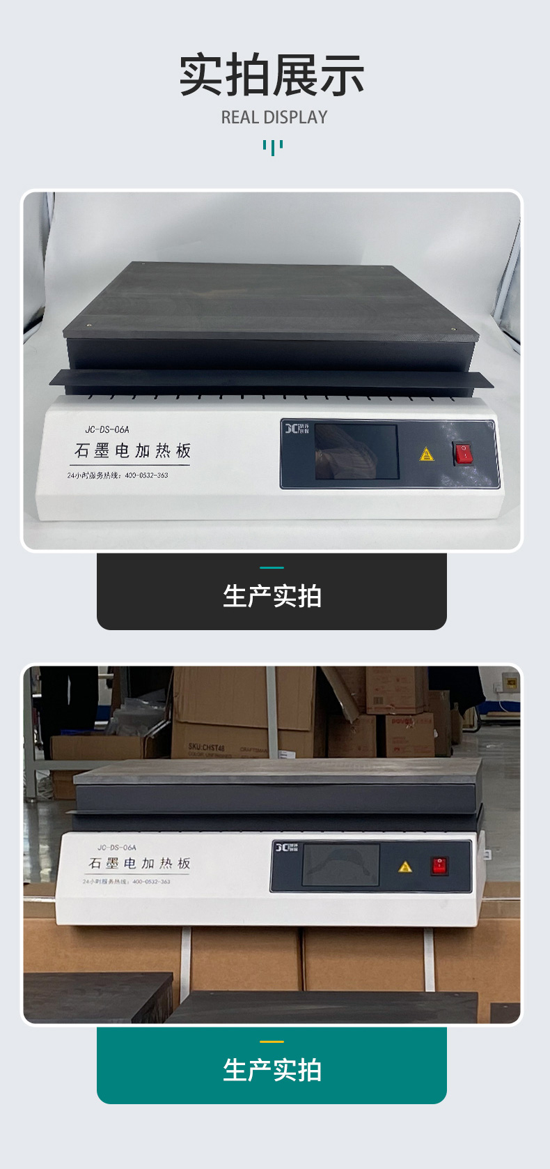 2、加热板选用导热性能优越的等静压高纯石墨,耐酸碱、耐高温、易清洁,加热温度均匀。