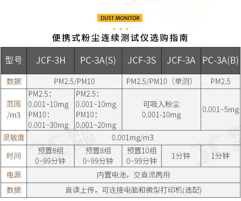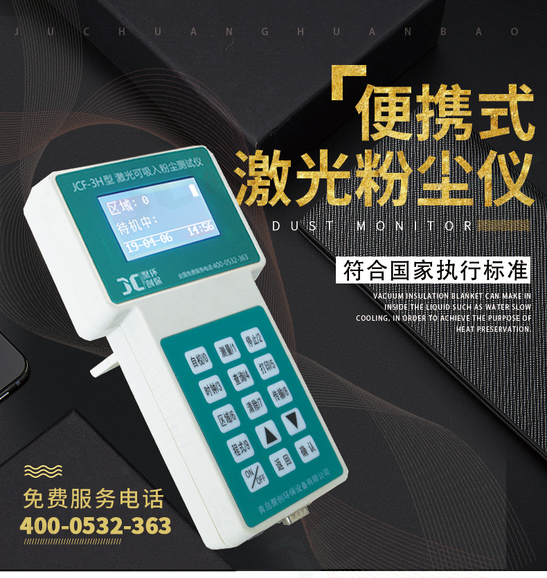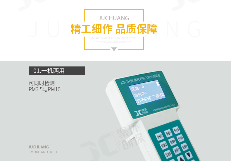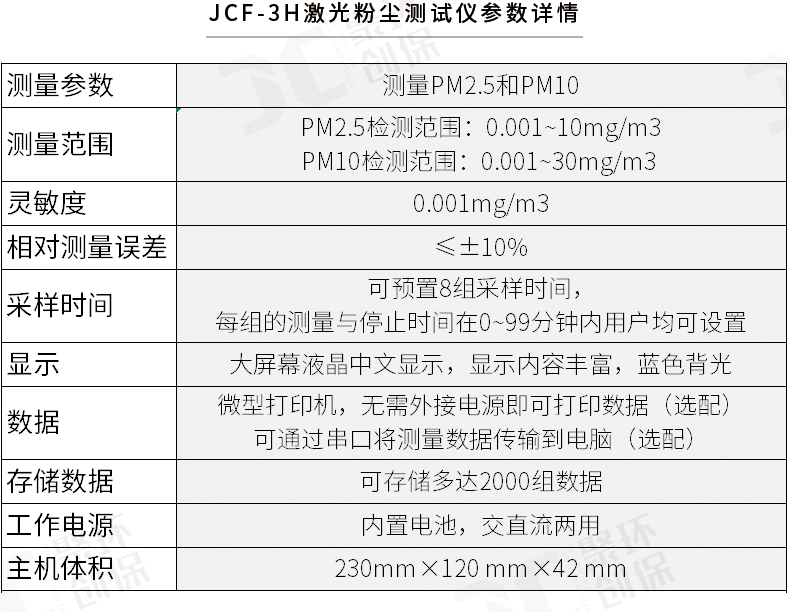聚创JCF-3H为光散射法便携式直读测量仪器,可以快速准确的测量出呼吸性粉尘颗粒物(PM2.5、PM10)的高性能仪器。该仪器以国家环保标准《WS/T 206-2001公共场所空气中可吸入颗粒物(PM10)测定方法——光散射法》为依据由我公司自主研发的新一代智能化测量仪器。