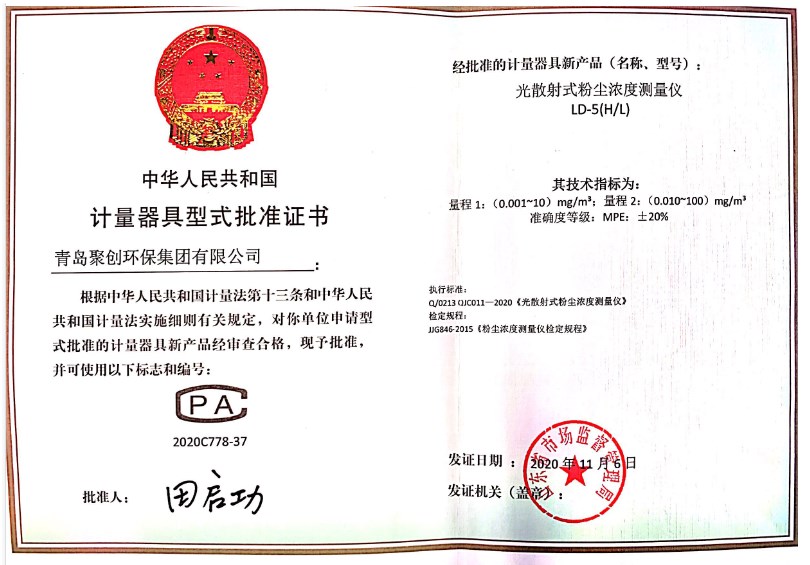 LD-5(H/L)是一款光散射原理的粉尘检测仪。该仪器符合公共场所卫生检验方法第二部分:化学污染物GB/18204.2-2014 5.2和6.1、光散射粉尘仪计量检定规程JJG846-2015,劳动卫生GBZ2[1].1-2007_工作场所有害因素职业接触限值_第1部分_化学有害因素标准、卫生部WS/T206-2001《公共场所空气中可吸入颗粒物(PM10)测定法-光散射法》标准、劳动部LD98-1996《空气中粉尘浓度的光散射式测定法》标准以及铁道部TB/T2323-92《铁路作业场所空气中粉尘测定相对质量浓度与质量浓度的转换方法》等行业标准以及卫生部卫监督发WS394-2012文件颁布实施的《公共场所集中空调通风系统卫生规范》的行业标准。