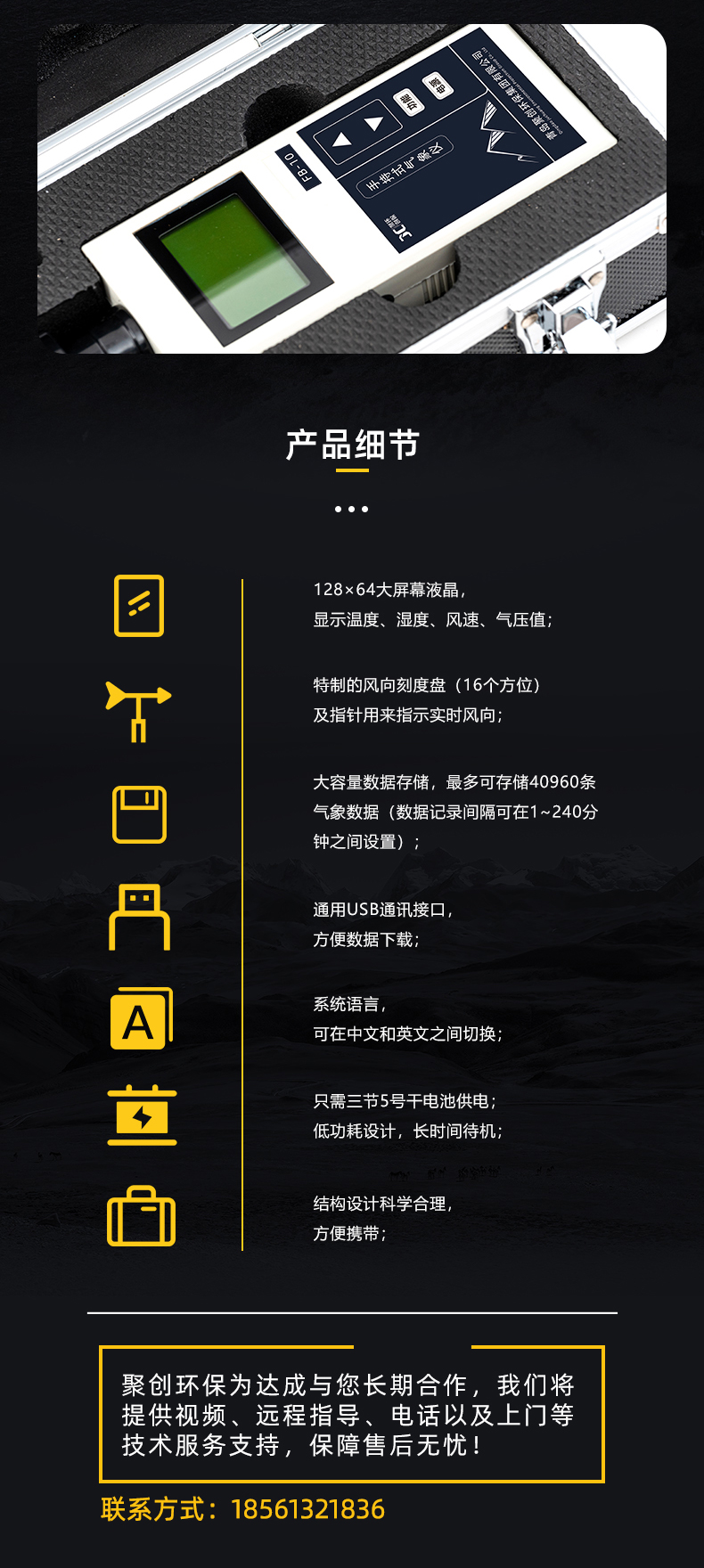 3、大容量数据存储,*多可存储40960条气象数据(数据记录间隔可在1~240分钟之间设置);