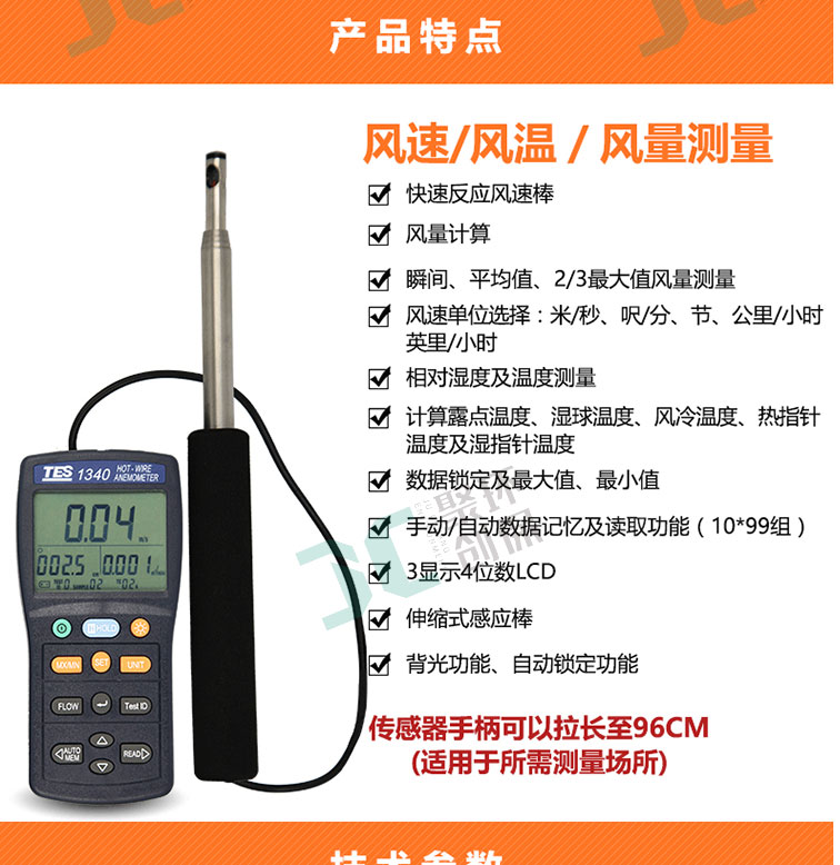 它也能计算风量、露点温度、湿球温度、风冷温度指标、湿指标温度及热指标温度,