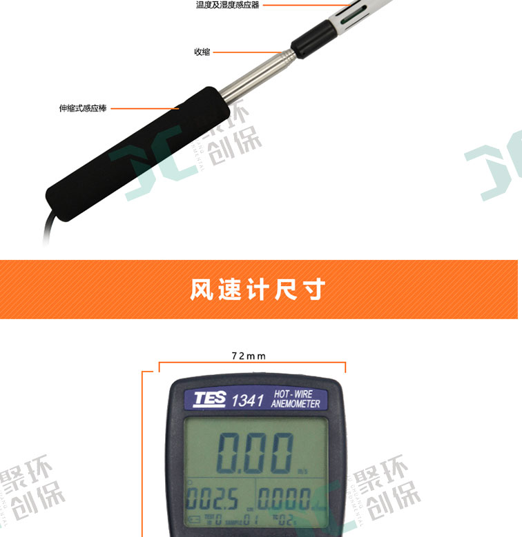 TES-1341多功能热线式风速计能使用于任何处所以测量风速、温度及相对湿度。