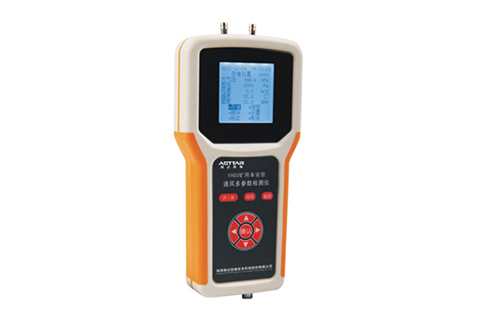 矿井通风多参数检测仪采用低功耗微处理器技术,LCD 汉字显示,对矿井的大气物理参数(风速、压力、温度)
