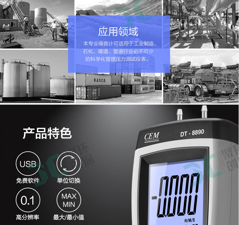 DT-8890/DT-8890A能测量0到±5psi的压差,11种可选压力单位:inH2O、psi、bar、mbar、kPa、inHg、 mmHg、ozin2、ftH2O、kgcm2。具有数据保持,*大值/*小值/平均值保持、调零、偏移和数据补偿。USB连接功能实现人机同步测量,以 及测量数据的保存和科学分析以便为每一项决策提供*佳数据化依据。是工业制造、石化、暖通、管道行业必不可少的科学化管理压力测试仪表。