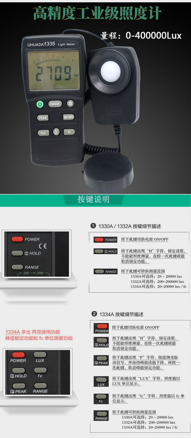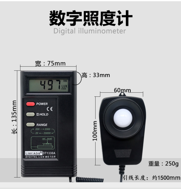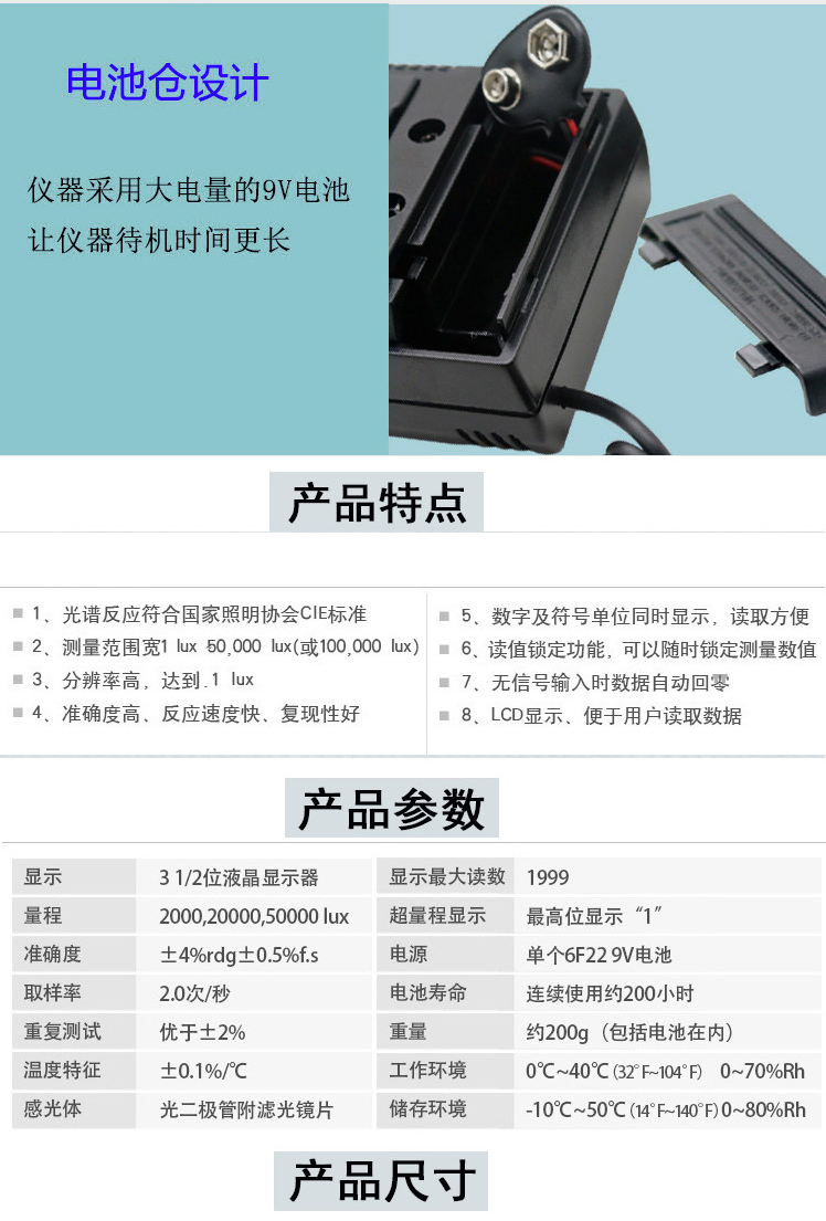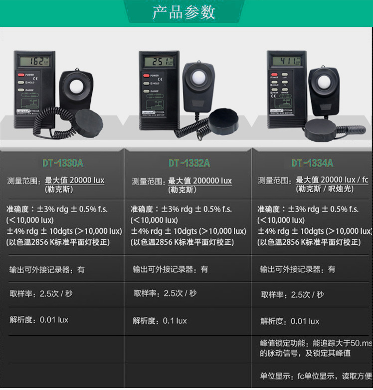 ±3%读值±5位(2856°Κ标准白炽灯校正)