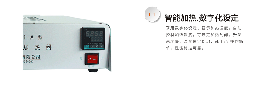 5、采用数字化设定、显示加热温度,自动控制加热温度,可设定加热时间。升温速度快,温度恒定均匀,耗电小,操作简单,性能稳定可靠。