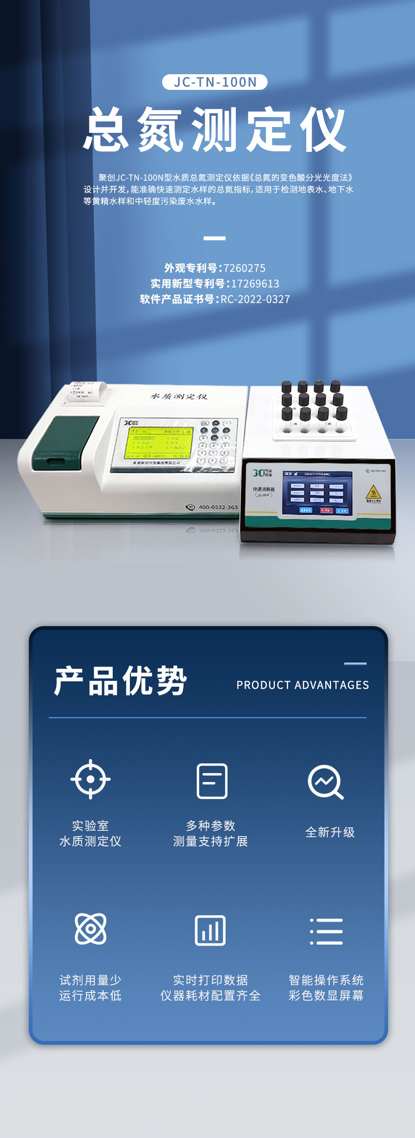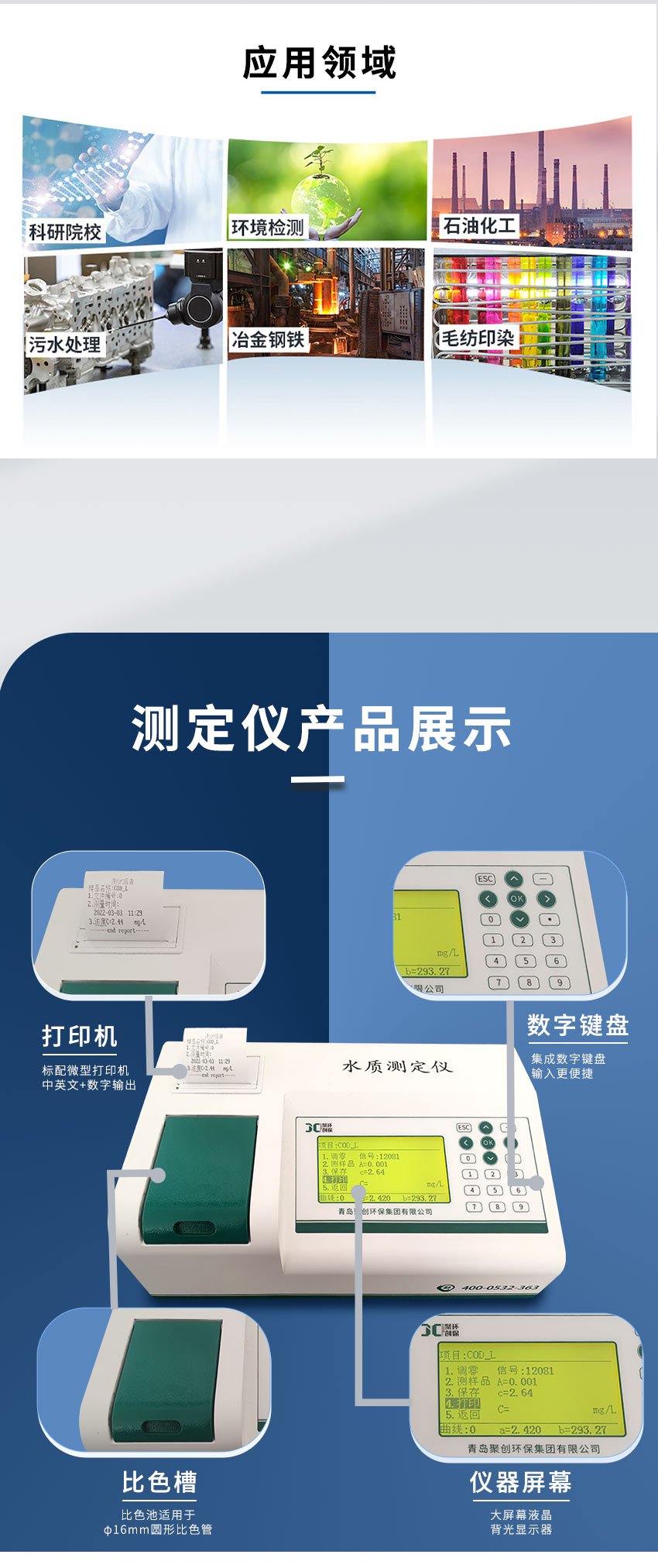 聚创JC-TN-100N型水质多参数测定仪依据《总氮的变色酸分光光度法》设计并开发,能准确快速测定水样的总氮指标,适用于检测地表水、地下水等一般环境水样和中轻度污染废水水样。可广泛应用于环保监测站、污水处理厂、大专院校、科研院所、石化、造纸、印染、电子、电力、钢铁、农业、市政工程等行业。
