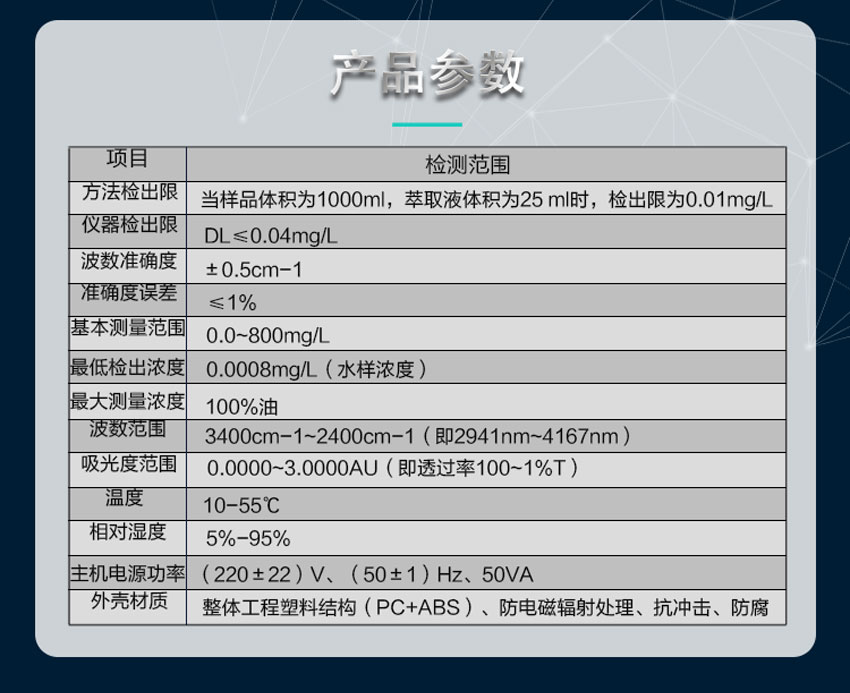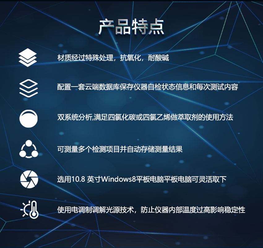 该仪器适用于地下水、地表水、工业废水和生活污水中石油类和动植物油类的测定,并取得相关证书。