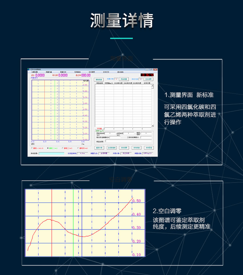 8、软件系统:采用双系统分析,分别满足四氯化碳或四氯乙烯做萃取剂的使用方法。