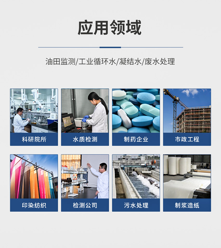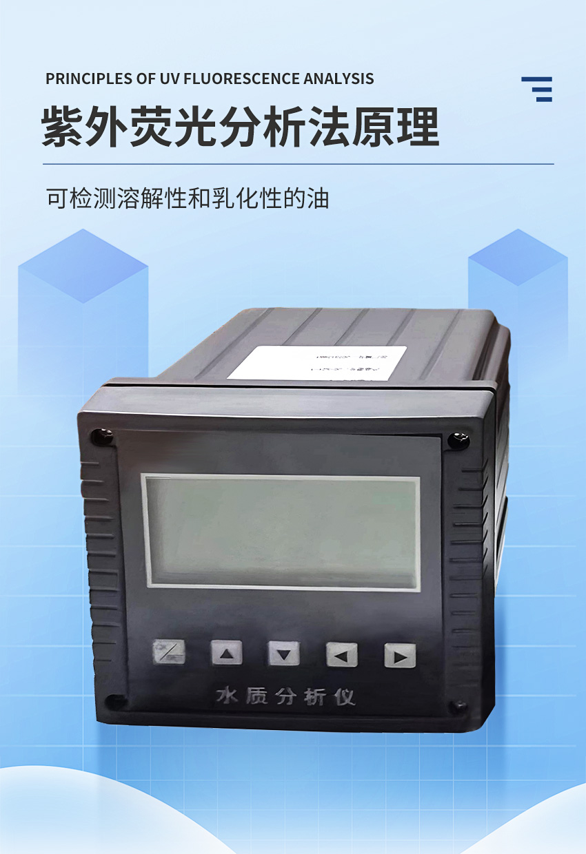 原理:采用紫外荧光法监测水体中的含油量,根据石油及其中芳香烃化合物和含轭双键化合物吸收紫外光后发射出的荧光强度定量分析水体中油的浓度。石油类中的芳香烃在紫外光激发下可产生荧光,根据荧光的强度计算出水中油的值。