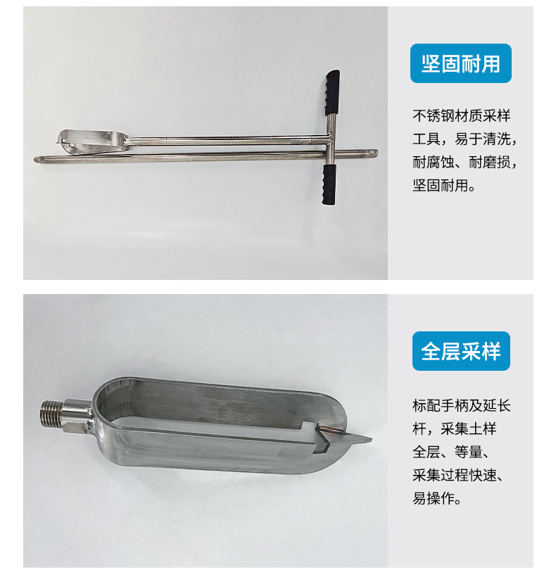 4.不锈钢材质采样工具,易于清洗,耐腐蚀、耐磨损,坚固耐用。
