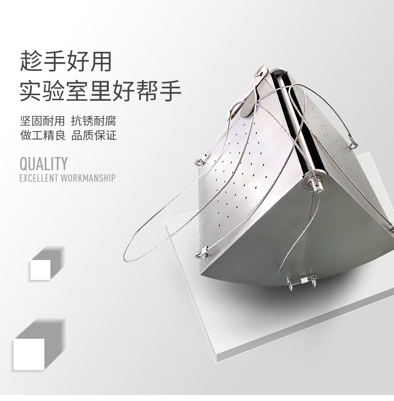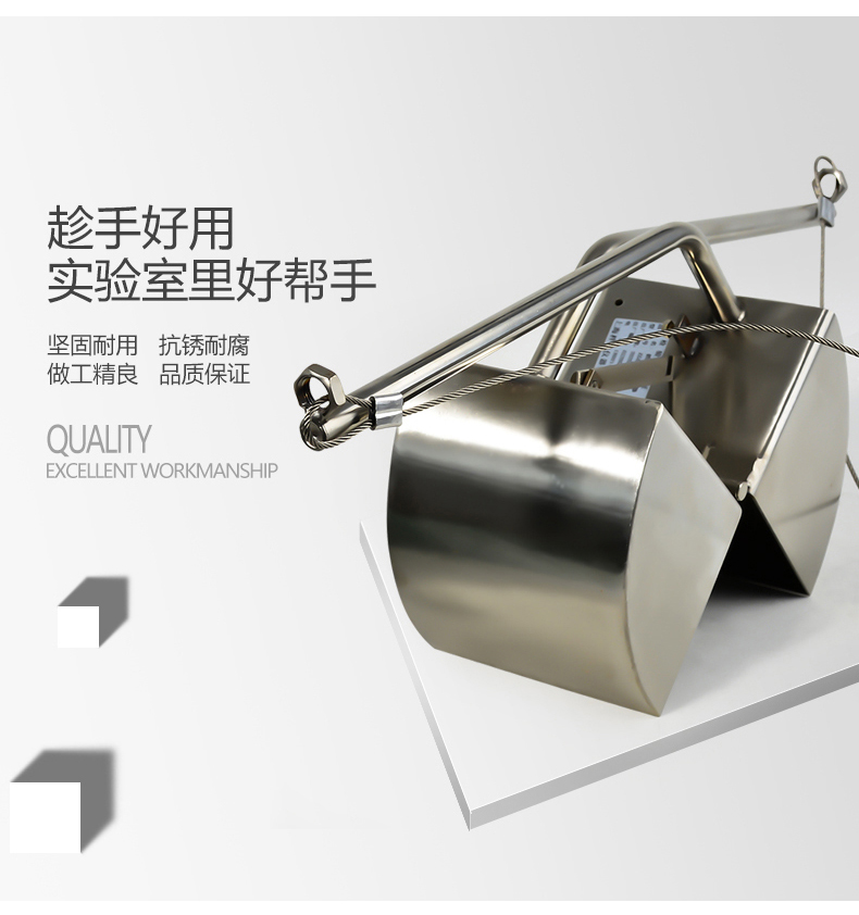 (3)通过拉绳缓缓地将采样抓斗放入水池中,当到河底时,轻松一下拉绳,支杆和搭钩在弹簧的作用下会自动松开。 注意:不要将采泥抓斗直接扔入水池中。