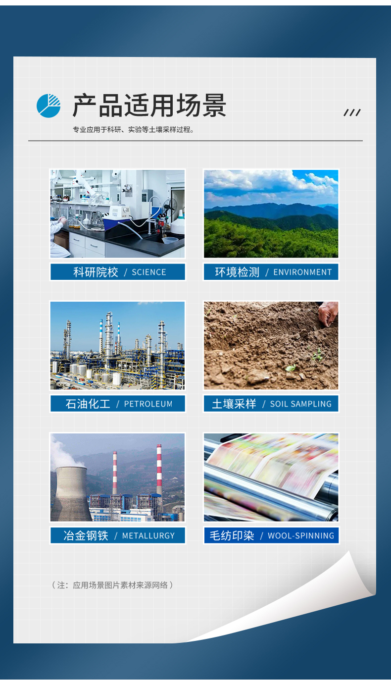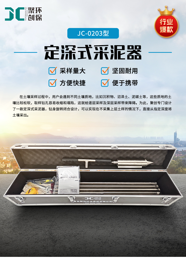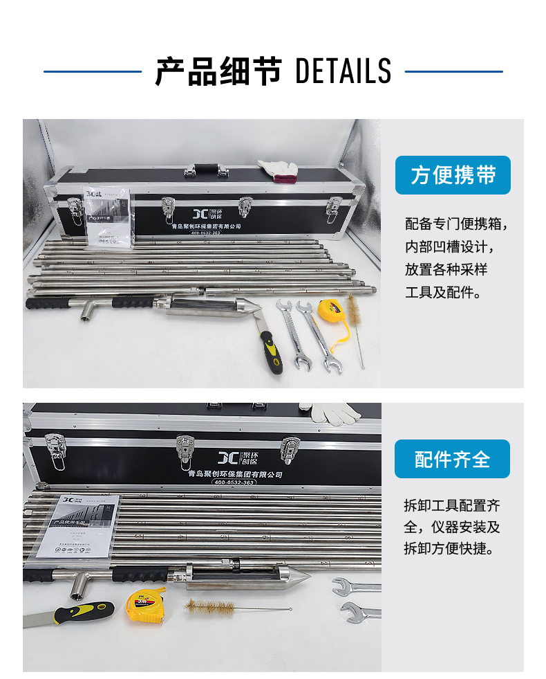 2.可针对不同深度的取样配备不同的延长杆,标准配置采样深度10米,采样区域广。