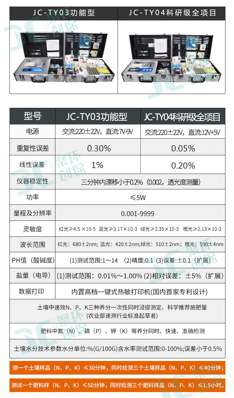 17、测一个土壤样品(N、P、K)≤30分钟,同时检测三个土壤样品(N、P、K)≤40分钟;