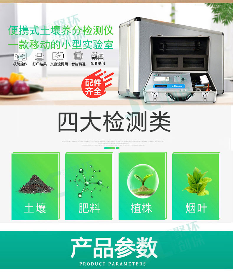 8、配套齐全:该仪器集药、器、仪为一体,携带方便,相当于一个小型实验室。适于农业服务部门或农资经销商、肥料厂商测土施肥和鉴别肥料真假。