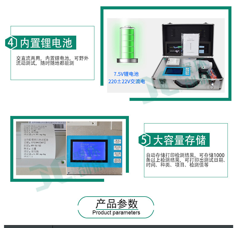 测一个土壤样品(N、P、K)≤15分钟,同时检测10个土壤样品(N、P、K)≤50分钟;