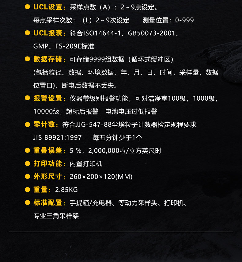 符合JJG-547-88尘埃粒子计数器检定规程要求 JIS B9921:1997 每五分钟少于1个