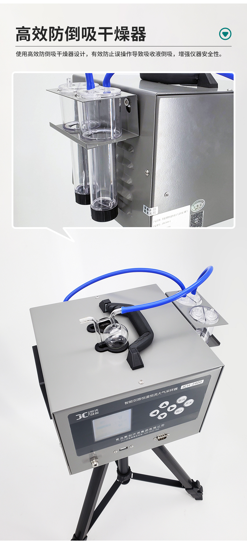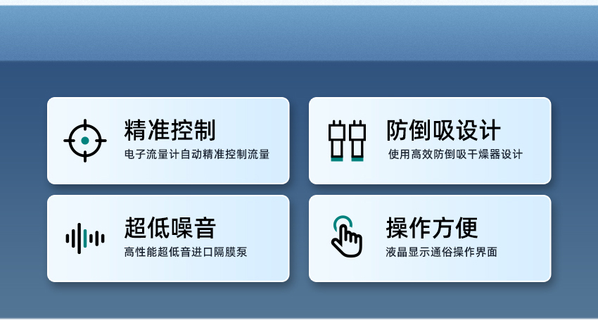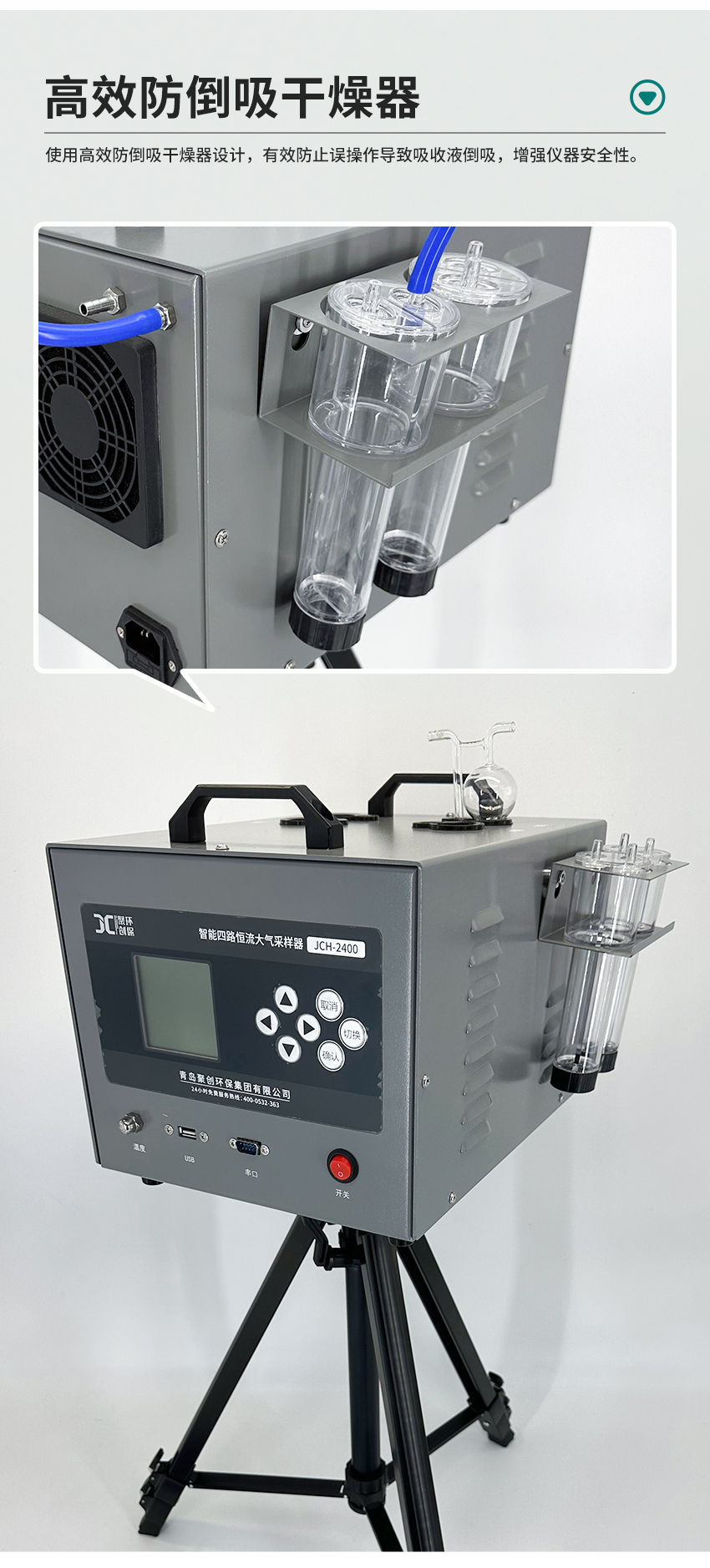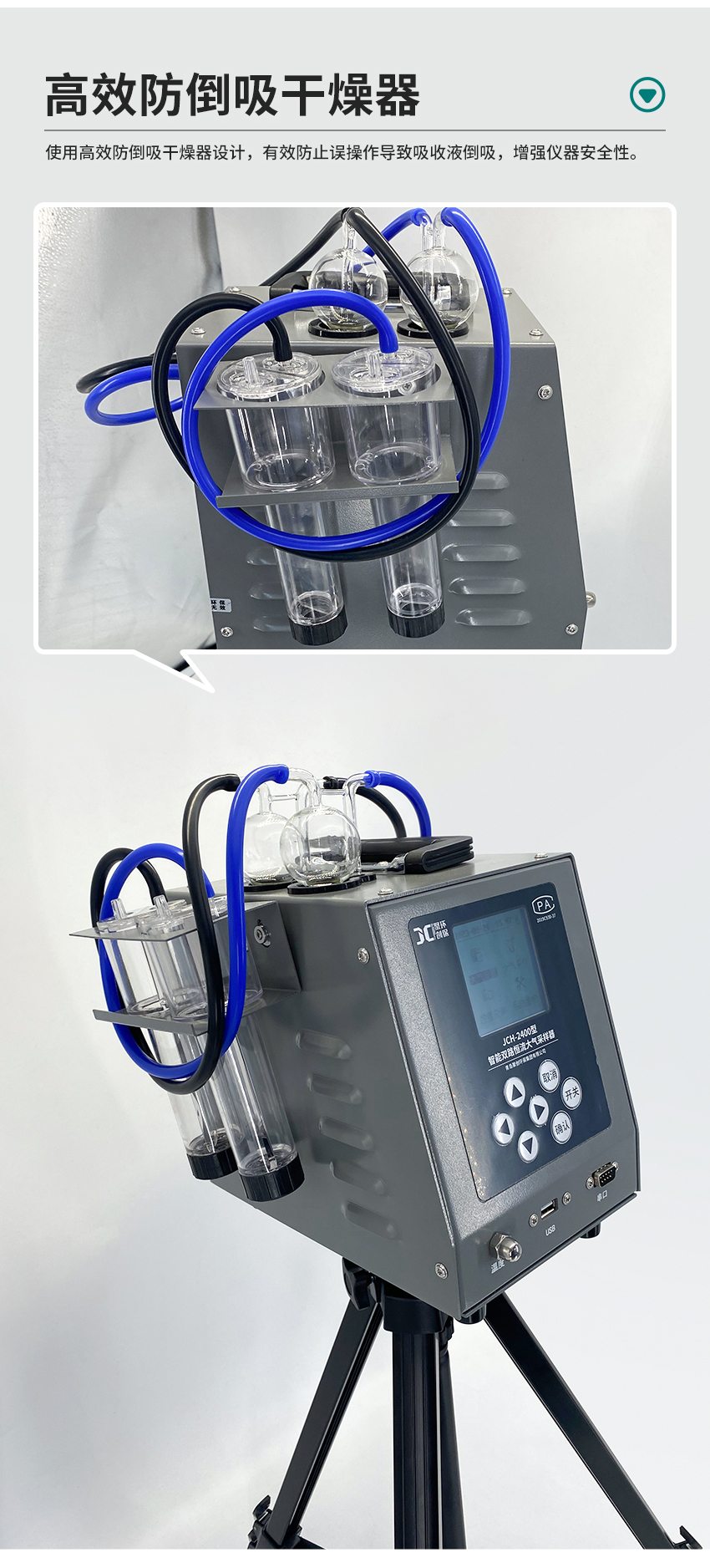 4、使用高效防倒吸干燥器设计,有效防止误操作导致吸收液倒吸,增强仪器安全性;