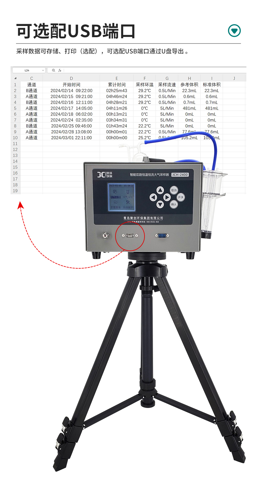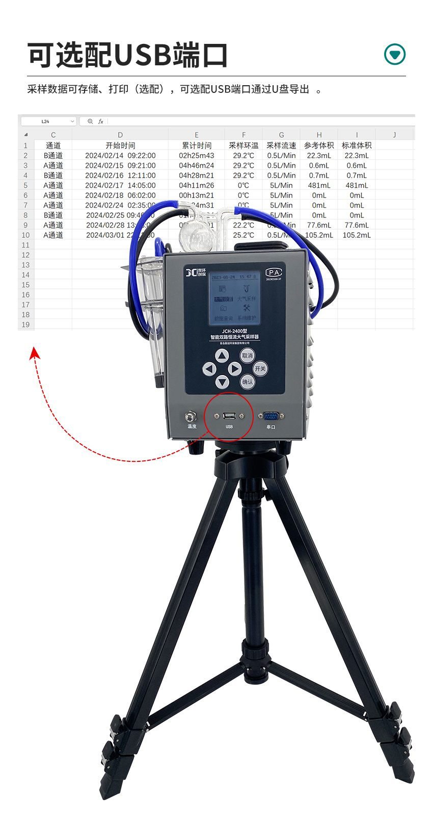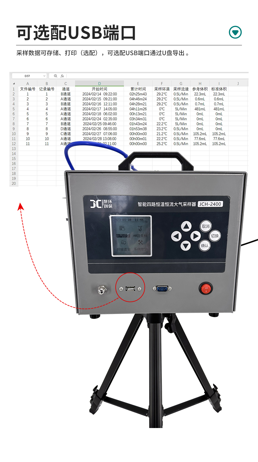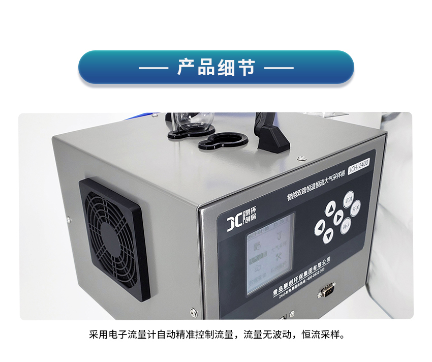 2、电子流量计自动精准控制流量,流量无波动,恒流采样;