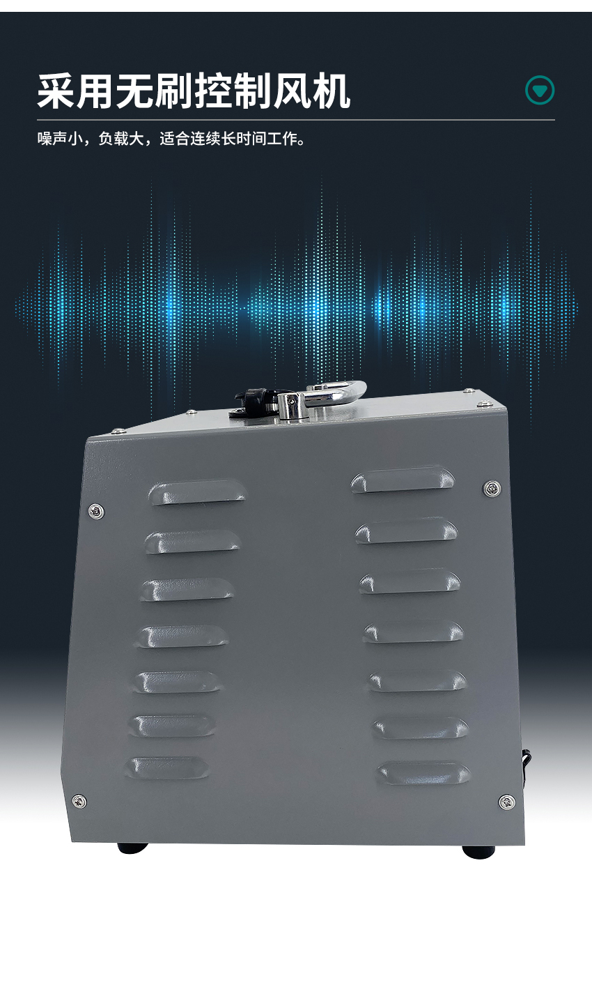 1、采用无刷控制风机,噪声小,负载大,适合连续长时间工作。