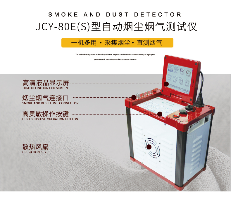 JCY-80E(S)型自动烟尘(气)测试仪技术性能指标符合国家环保局颁布的烟尘烟气采样仪的有关规定,实现烟尘、烟气同机采样及检测,大大缩短现场工作时间。适用于各种锅炉、工业炉窑的烟尘排放浓度、折算浓度和排放总量的测定和各种锅炉、工业炉窑的SO2、NO、NO2、CO、CO2、H2S等有害气体的排放浓度、折算浓度和排放总量的测定及各类脱硫设备效率的测定。