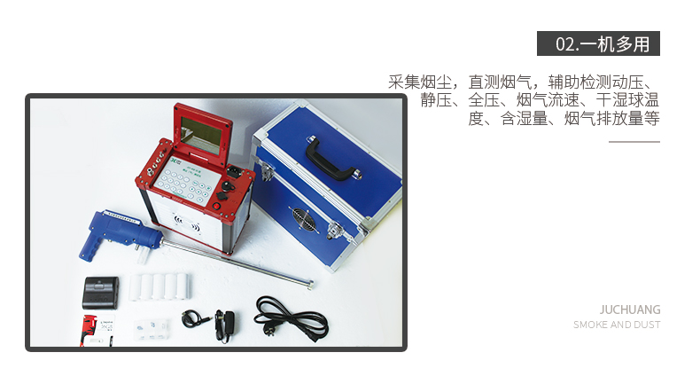 1.自动跟踪烟气流速等速采集烟尘。主机内集成差压、微压传感器、微处理器、直流旋片泵,基于皮托管平行法等速采样原理,自动测量跟踪烟气流速等速采集烟尘。